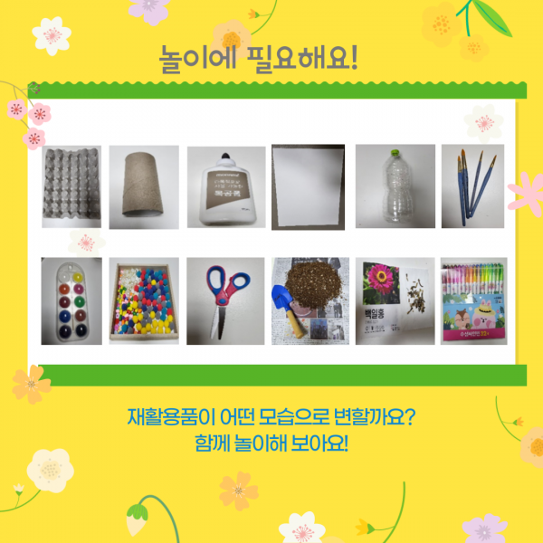 봄을 만난 재활용품 페이지 정보 작성자 영등포구육아종합지원센터 작성일22-03-22 15:39 조회962회 댓글0건 관련링크 이전글 다음글 목록 본문 가정에서 볼 수 있는 재활용품을 활용해 놀이활동을 해보아요 댓글목록 등록된 댓글이 없습니다. 이전글 다음글 목록