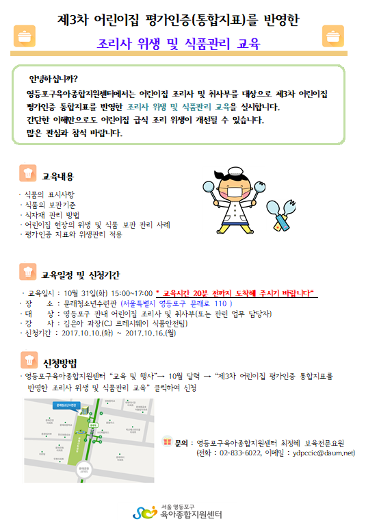 [보육교직원- 제3차 어린이집 평가인증 통합지표를 반영한 조리사 위생 및 안전교육]