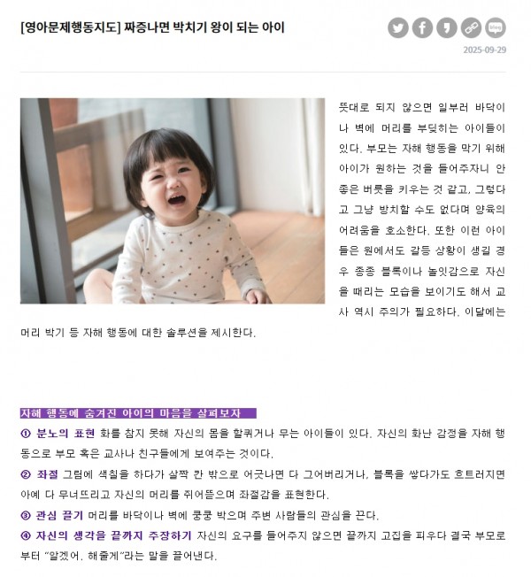 (양육정보) [영아문제행동지도] 짜증나면 박치기 왕이 되는 아이