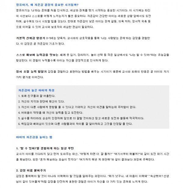 (양육정보) 아이의 마음을 단단하게 세우는 힘, 자존감