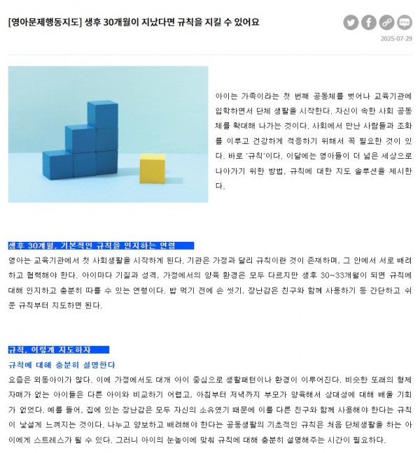 (양육정보) [영아문제행동지도] 생후 30개월이 지났다면 규칙을 지킬 수 있어요