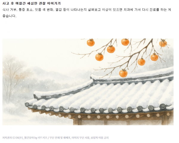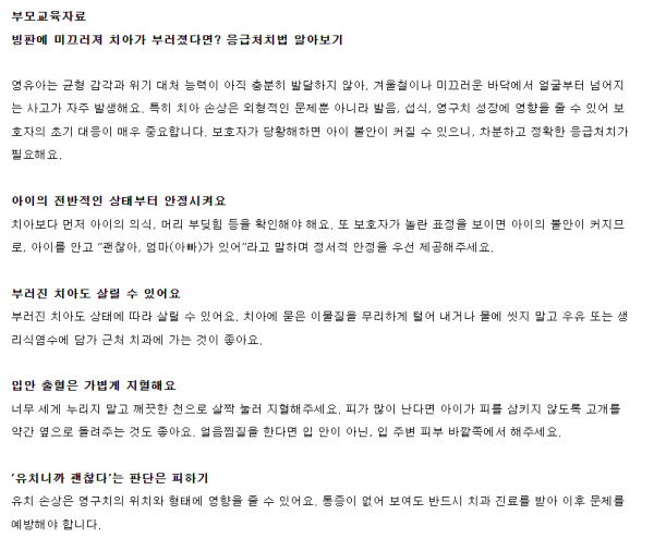 빙판에 미끄러져 치아가 부러졌을 때 보호자의 차분하고 정확한 응급처치 방법에 대해 알아봅시다.