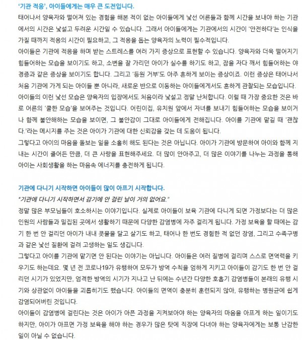 양육자와 떨어진 적 없던 아이들이 처음으로 기관에 나가게 되면 양육자도 힘들지만 우리 아이들은 더 큰 고비를 맞이하게 됩니다.