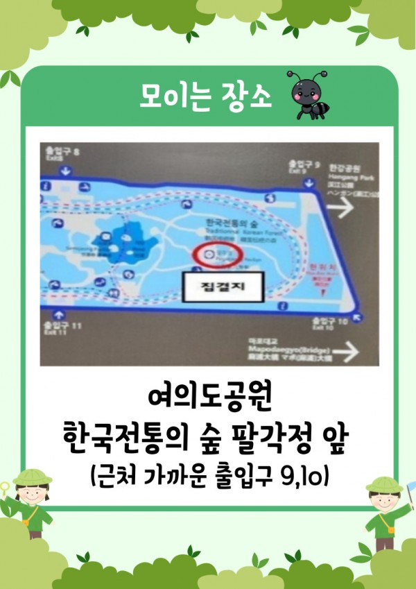 - 교육장소 및 주소 : 서울 영등포구 여의도동 여의공원로 68 여의도공원 한국전통의 숲 팔각정 앞