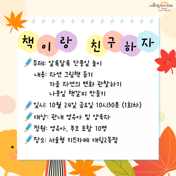 10월 서울형키즈카페 대림2동점 책놀이 프로그램