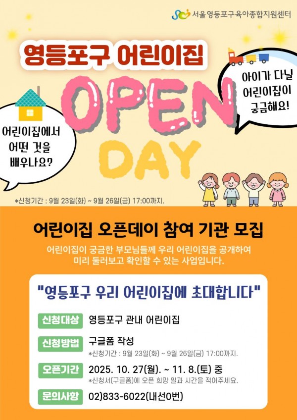 영등포구 어린이집 오픈데이(Open Day) 참여기관 모집 안내