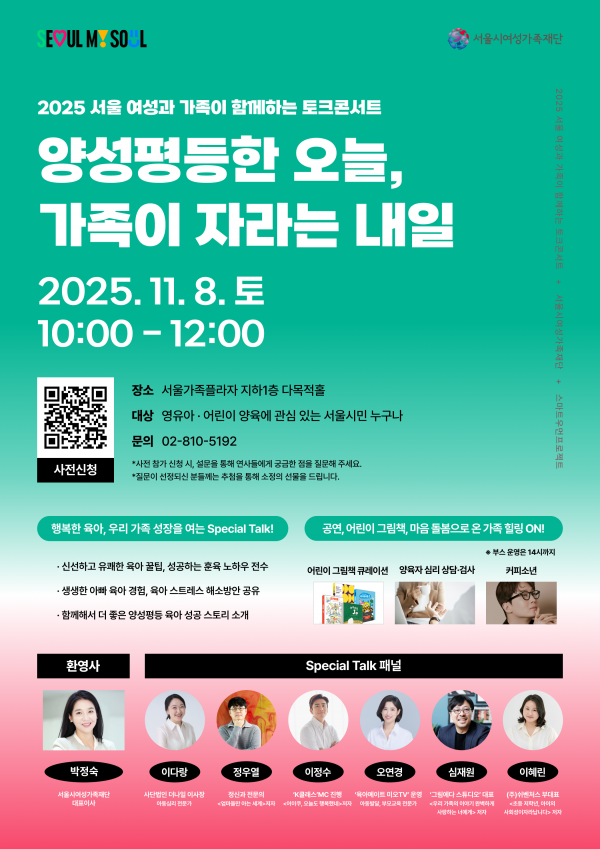 우리 가족의 행복을 채우는 양성평등한 대화, 2025 서울 여성과 가족과 함께하는 토크콘서트!