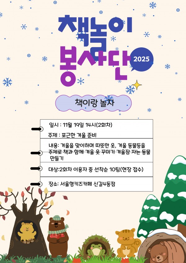 11월 서울형 키즈카페 신길4동점 책놀이프로그램 안내