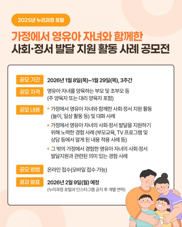 육아정책연구소 「영유아 자녀와 함께한 사회 ·정서 발달 지원 활동 사례 공모전 」 안내입니다.