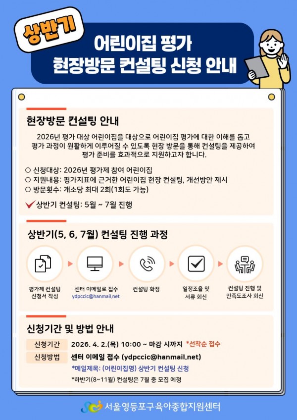 상반기 어린이집 평가 현장방문 컨설팅 신청 안내