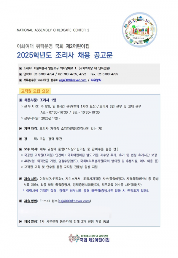 | 보수 | 보육사업 지침 준용(기본급) | 모집인원 | 1 명 |